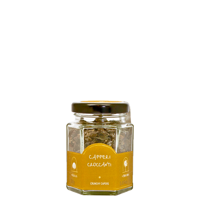 I Capperi Croccanti La Nicchia (30 g) reinterpretano la tradizione di Pantelleria in una forma nuova e immediatamente spendibile in cucina. Si ottengono da capperi di calibro selezionato, prima dissalati e poi essiccati lentamente al sole, con una rifinitura in disidratatore che ne esalta la resa: il risultato è una croccantezza decisa e pulita, unita a un profilo sapido e aromatico intenso. Pronti all’uso, sono ideali per completare piatti di pesce e carne, insalate, verdure e primi, aggiungendo texture, profondità gustativa e un tocco distintivo all’impiattamento. Funzionano molto bene anche in servizio aperitivo come snack gourmet, direttamente dal vasetto.