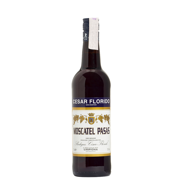 Il Cesar Florido Moscatel Pasas è un vino dolce naturale andaluso prodotto dalla storica Bodegas César Florido di Chipiona, sulla costa di Cadice, nella zona del Jerez-Xérès-Sherry. Ottenuto da uve Moscatel de Alejandría appassite al sole su stuoie di esparto, nasce da un processo tradizionale che concentra zuccheri e aromi.